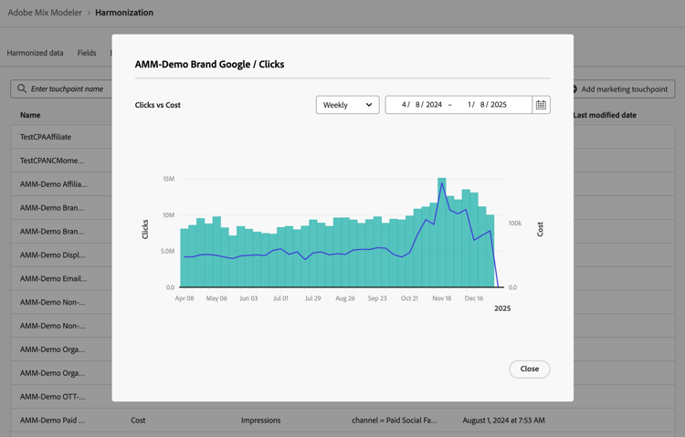 Selecione um campo harmonizado de Touchpoint spend, por exemplo Cost.