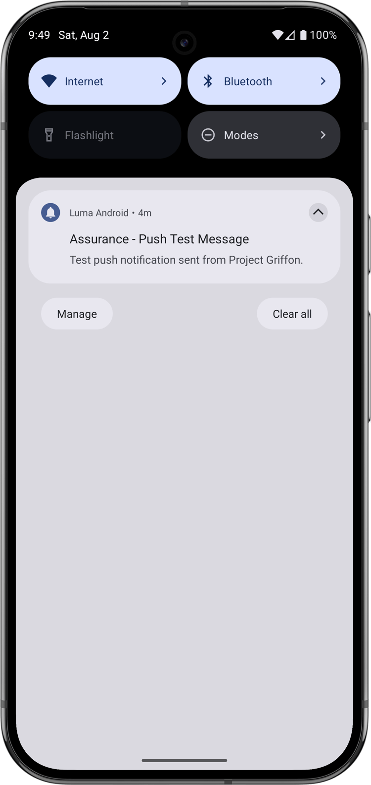Você verá a notificação por push aparecer na parte superior do aplicativo.