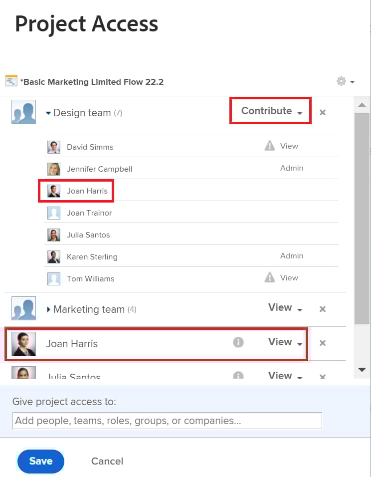 Os usuários têm a permissão mais alta mostrada na tela de compartilhamento. Para obter mais informações sobre permissões, consulte o artigo Visão geral das permissões de compartilhamento em objetos.