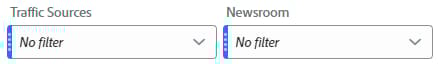 Novos recursos nesses menus suspensos também facilitaram a segmentação de dados. Menus suspensos dinâmicos atualizam outros menus suspensos com base na seleção do usuário para um anterior. Por exemplo, selecionar uma sala de redação atualizará a lista suspensa de países com base nos países que visitaram o site da sala de notícias. Esse recurso torna uma lista potencialmente longa (como a de países) menos cansativa para os usuários finais do Workspace E evita erros, pois uma combinação de país e sala de redação não retorna resultados.