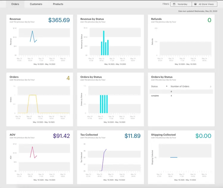 A temporada de pico decorre rapidamente, assim como a sua tomada de decisão. O Adobe Commerce oferece painéis e relatórios configuráveis para rastrear o tráfego, as conversões, o abandono de carrinho e outros KPIs em tempo real.