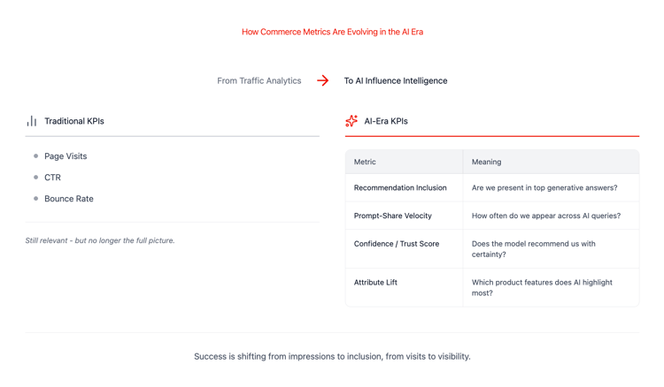 Porém, o comportamento do consumidor mudou, não de forma incremental, mas estrutural. Hoje, um número crescente de decisões sobre produtos começa com assistentes de chat com IA, resumidores, mecanismos de recomendação e pesquisadores de produtos personalizados. Um comprador pode perguntar: