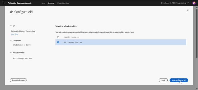 Så här konfigurerar du API:t för tjänsten Automated Forms Conversion på Adobe Developer Console: