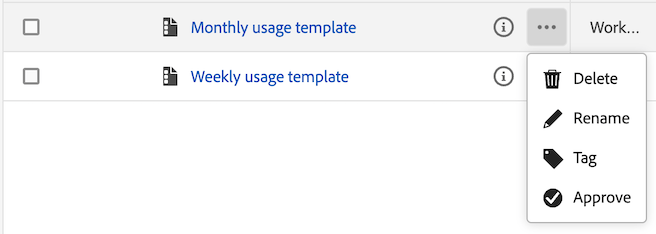 Byta namn på, tagga eller godkänna mallar