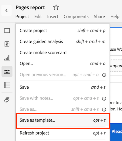 Välj Projekt > Save as template….