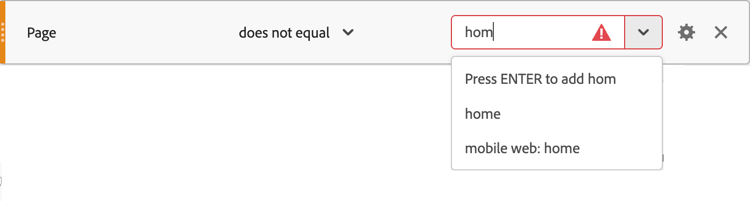 När du skriver ett värde för en operator som validerar tillgängliga värden, som equals, och värdet inte matchar de värden som är tillgängliga för komponenten, visas en
