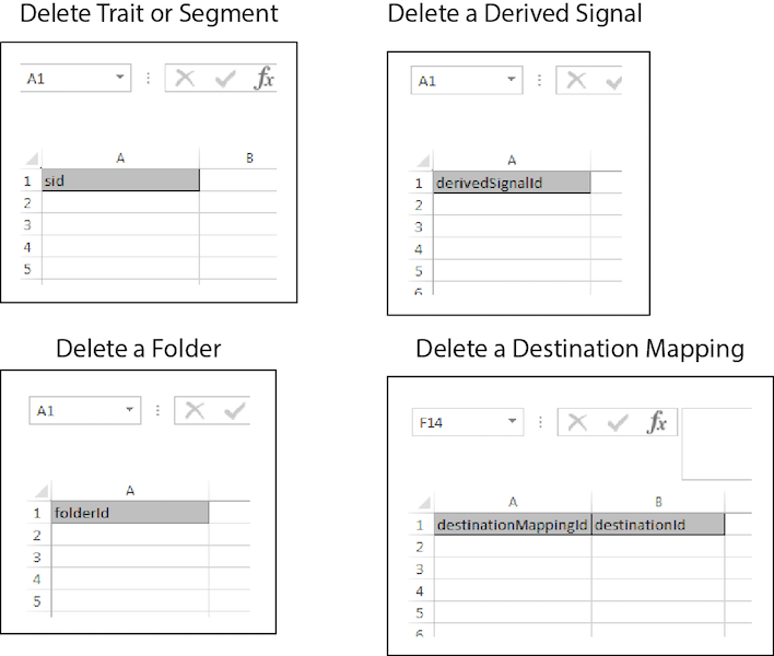 Klistra in borttagningsrubrikerna på den första raden i uppdateringskalkylbladet.