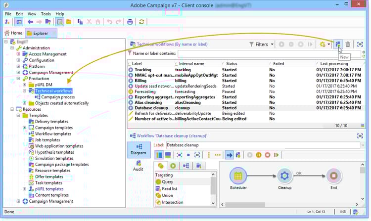 Gå nu till noden Administration > Production > Technical workflows och skapa ett nytt arbetsflöde.