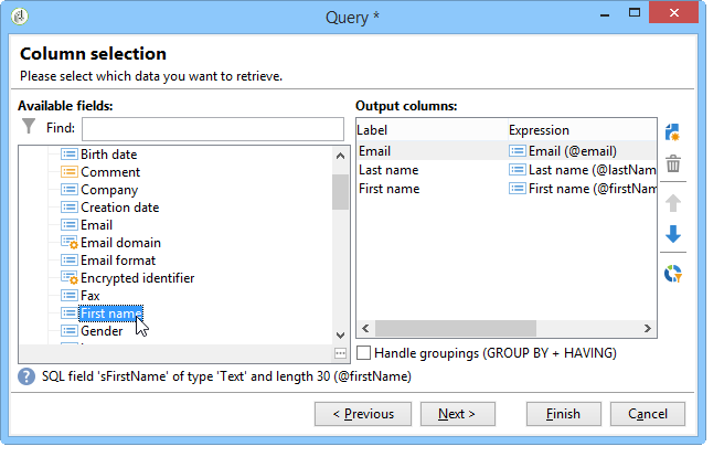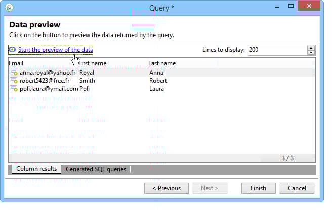 På den sista sidan visas en förhandsgranskning av de data som returnerats av frågan.