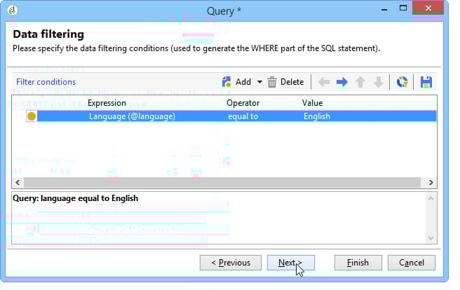 Frågeparametrarna redigeras med hjälp av en assistent.