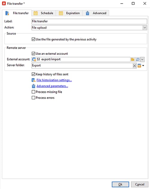 Lägg till den tredje och sista aktiviteten för överföring av filen till en lagringslösning som stöds.