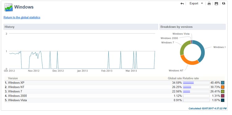 För varje operativsystem kan du visa uppdelningen av besökare per operativsystemversion.