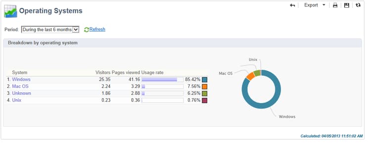 Du kan visa uppdelningen av besökare per operativsystem i relation till det totala antalet besökare.