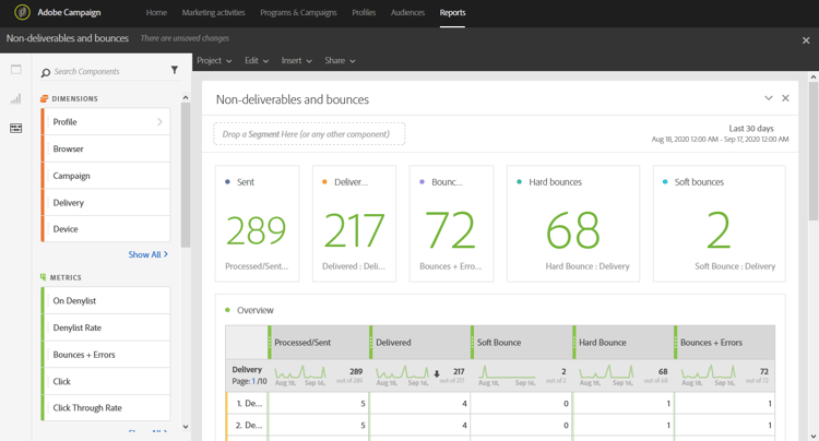 • Hårt studs: Det totala antalet permanenta fel, till exempel en felaktig e-postadress.