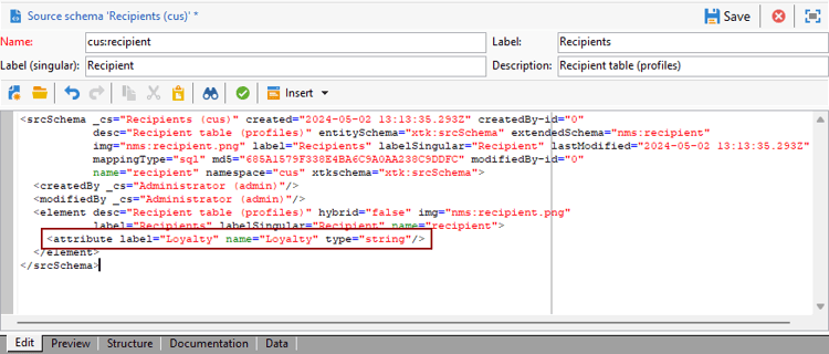 Så här lägger du till ett anpassat fält för lojalitet i mottagarschemat:
