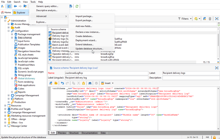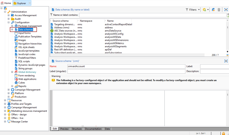 Navigera till mappen Administration > Configuration > Data schemas i Utforskaren.