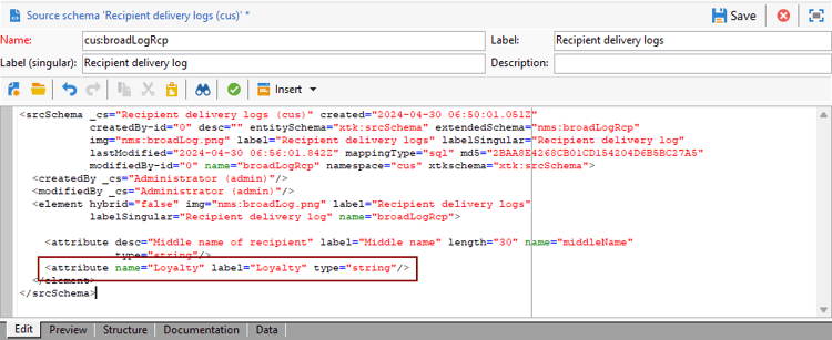 code language-none <attribute label="Loyalty" name="loyalty" type="string"/>
