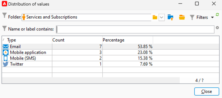 Du kan använda ikonen Distribution of values för att visa ompartitionen av värden för det valda fältet i den aktuella mappen.