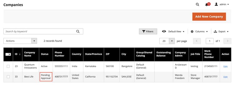 Gå till Customers > Companies på sidofältet Admin.