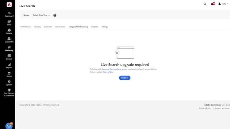 Funktionen finns i Admin på Marknadsföring > SEO & Search > Live Search > Kategorimarknadsföring.