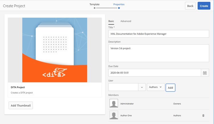 AEM Guides tillhandahåller en DITA-projektmall som du kan använda för att skapa och hantera dina granskningsuppgifter.