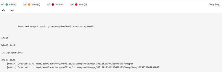 De senaste publiceringsförbättringarna av Experience Manager Guides lägger nu till en ny system_config.xml-fil till de temporära filer som genereras när HTML-, PDF- och JSON-utdata publiceras med DITA-OT, liksom utdata från PDF. Den här filen inkluderas automatiskt i publiceringsjobbet och är även tillgänglig via temporära filer när du aktiverar alternativet Behåll temporära filer för förinställningarna och genererar utdata.
