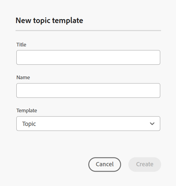 Med Adobe Experience Manager Guides kan du skapa anpassade kartor och ämnen från mappen Dita-templates. Du kan använda de här anpassade mallarna för att skapa en karta och ett ämne. Du kan också dela mallarna med författarna och de kan använda dem för att skapa sina filer. Med hjälp av de här mallarna kan du tillåta författarna att behålla separata kopior av vissa resurser som finns i mallmappen.