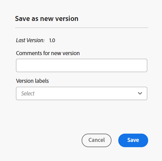 Ange kommentarer och versionsetiketter för att identifiera ändringarna och välj Spara för att skapa en ny version av filen.