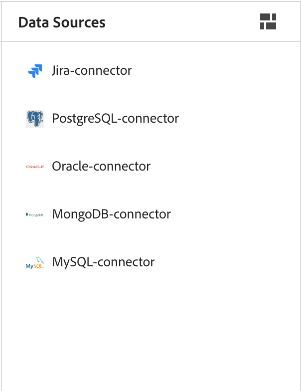 En datakälla är ett system där du lagrar och hanterar data för din organisation. Det här är databassystem som JIRA, SQL-databaser, PIM eller PLM. AEM Guides tillhandahåller en funktion för att ansluta till din datakälla och använda data från den.