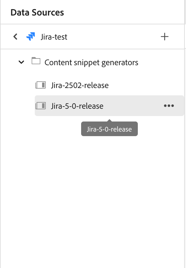 På panelen Datakällor visas tillgängliga generatorer för innehållsfragment.