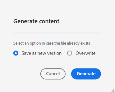 Generera ett ämne och om filen redan finns sparar du den som en ny version eller skriver över den.