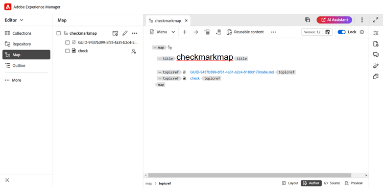 Du kan också öppna en kartfil i Assets-gränssnittet och starta redigeraren för att redigera avsnitten i kartfilen.