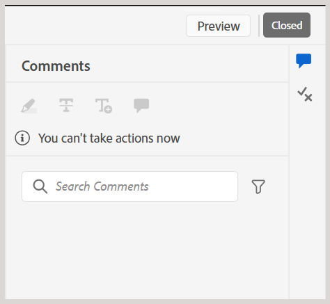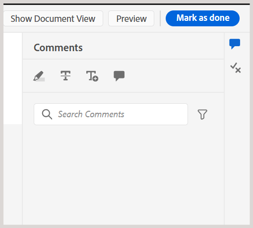 Om du vill få åtkomst till kommentarer på åtgärdsnivå från granskningsgränssnittet går du till den vänstra panelen och väljer ikonen Åtgärdskommentarer .