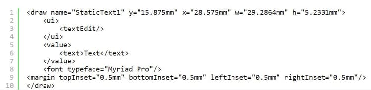 Adobe använder termen XFA PDF-formulär för att hänvisa till den interaktiva och dynamiska Forms du skapar med AEM Forms Designer. Forms och de filer du skapar med Designer är baserade på Adobe XML Forms Architecture (XFA). På många sätt ligger filformatet XFA PDF närmare en HTML-fil än en vanlig PDF-fil. Följande kod visar hur ett enkelt textobjekt ser ut i en XFA PDF-fil.