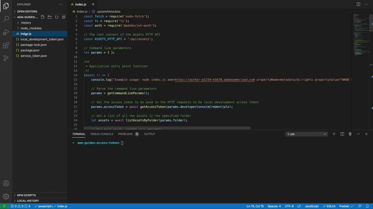 I den här självstudien används ett enkelt Node.js-program som körs från kommandoraden för att uppdatera metadata för resurser på AEM as a Cloud Service med Assets HTTP API.