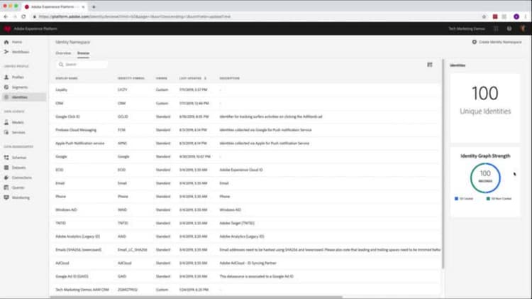 Experience Platform har en mängd standardnamnutrymmen, men du kan behöva skapa ytterligare namnutrymmen för att kategorisera dina identiteter ordentligt. Mer information finns i guiden om att skapa anpassade namnutrymmen för din organisation.