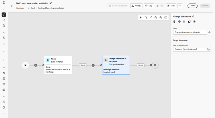 Lägg till en Change dimension-aktivitet för att växla tillbaka från önskelistor till respektive kunduppsättning för målinriktning.