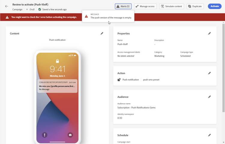 När ditt push-meddelande är klart slutför du konfigurationen av din resa eller kampanj för att skicka det.