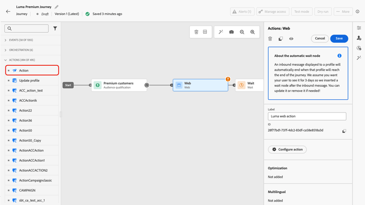 Välj Action på fliken Web i kampanjen eller Edit content-aktiviteten i resan.