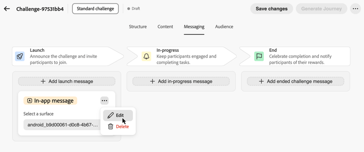 Skapa flerkanalsmeddelanden för att engagera kunderna i viktiga stadier av utmaningens livscykel. Meddelanden är valfria men rekommenderas för att maximera kundengagemanget.