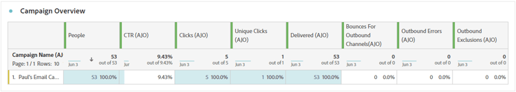Tabellen Campaign overview fungerar som en omfattande kontrollpanel med en detaljerad beskrivning av nyckeltal relaterade till kampanjen. Detta inkluderar viktig information som antalet profiler och de åtgärder som utförts, vilket ger en grundlig förståelse för kampanjens resultat och engagemang.