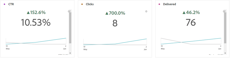 Campaign KPI:er (Key Performance Indicators) fungerar som en heltäckande kontrollpanel, som tillhandahåller en analys av viktig statistik som är kopplad till din kampanj. Detta omfattar detaljer som antalet klick och antalet levererade meddelanden, vilket ger en heltäckande inblick i kampanjens effektivitet och nivå av engagemang.