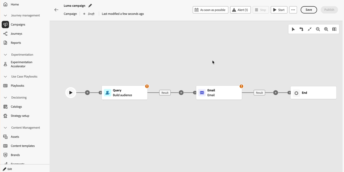 Orchestrerade kampanjer kan nu aktiveras via en API-signal. Konfigurera målkampanjen som utlöst av en signal, publicera den och utlösa den sedan med ett API-anrop för att konfigurera den. Alla parametrar som ingår i API-anropet är tillgängliga som variabler i den kampanj som körs. Observera att signalutlösta orkestrerade kampanjer förblir batch-kampanjer och skiljer sig från API-utlösta kampanjer.