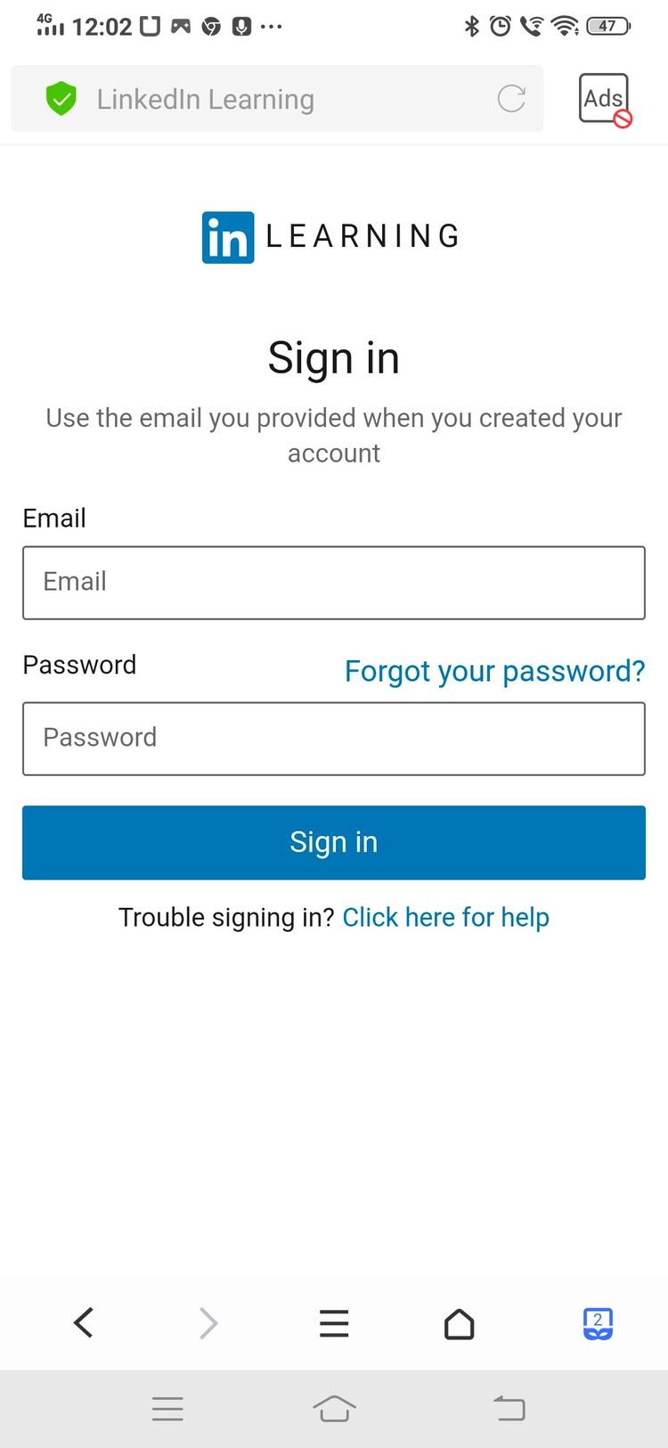 Om du redan har LinkedIn-programmet installerat kommer kursen att öppnas i programmet, annars öppnas kursen i standardwebbläsaren, där du måste logga in med dina LinkedIn-inloggningsuppgifter.
