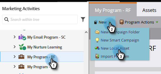 När ditt program är valt klickar du på listrutan New och väljer New Local Asset.