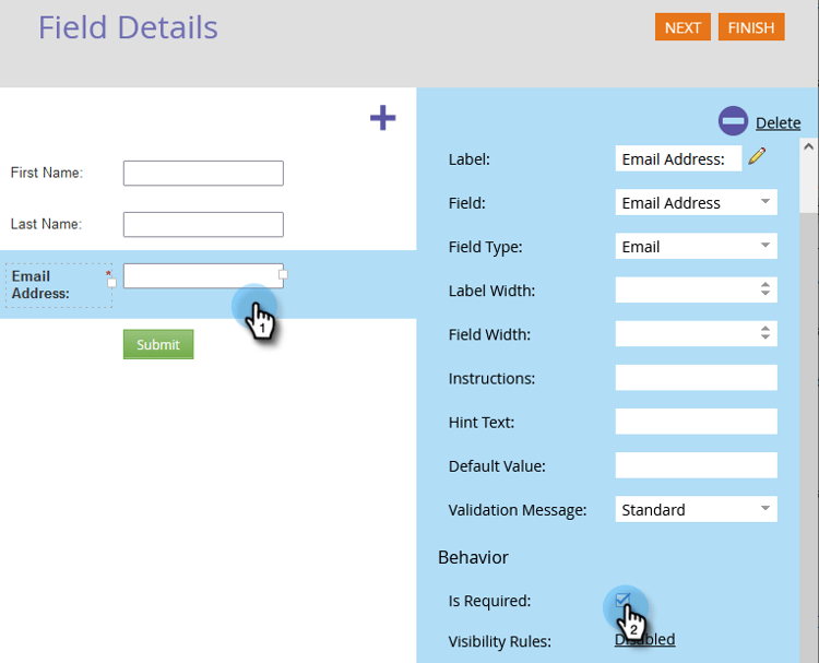 När landningssidans redigerare öppnas drar du elementet Form till arbetsytan.