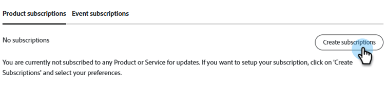 Stanna på fliken Produktbeskrivningar och klicka på Skapa prenumerationer.