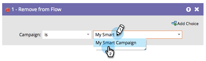 Anta att ni har ett Smart Campaign-flöde som använder"Skicka avisering" för att påminna en säljare om att ringa en aktiv potentiell kund. Det skickar ett meddelande varje dag tills rektorn ringer. Du kan använda Ta bort från flöde i en utlösarkampanj när den potentiella kunden har kontaktats för att stoppa ytterligare aviseringar. Det är som en Smart Campaign-projektorplats för en person.