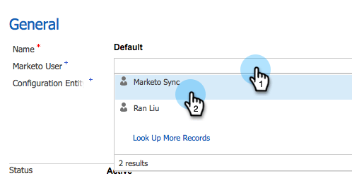 Klicka på fältet Marketo User och välj synkroniseringsanvändare.