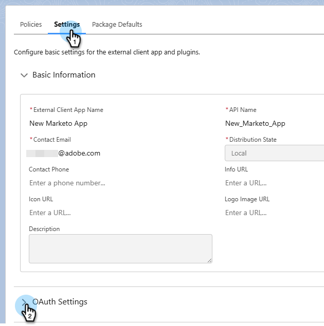 Salesforce använder OAuth-protokollet för att tillåta användare av program att på ett säkert sätt få åtkomst till (autentisera programmet med OAuth 2.0) data utan att behöva visa inloggningsuppgifter. Nedan beskrivs de steg som ska utföras för att ansluta och synkronisera Marketo Engage säkert med Salesforce.